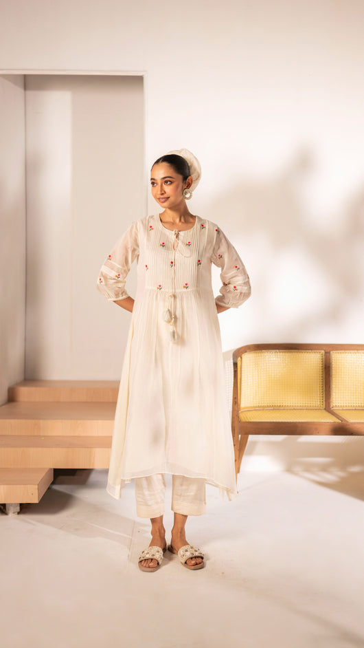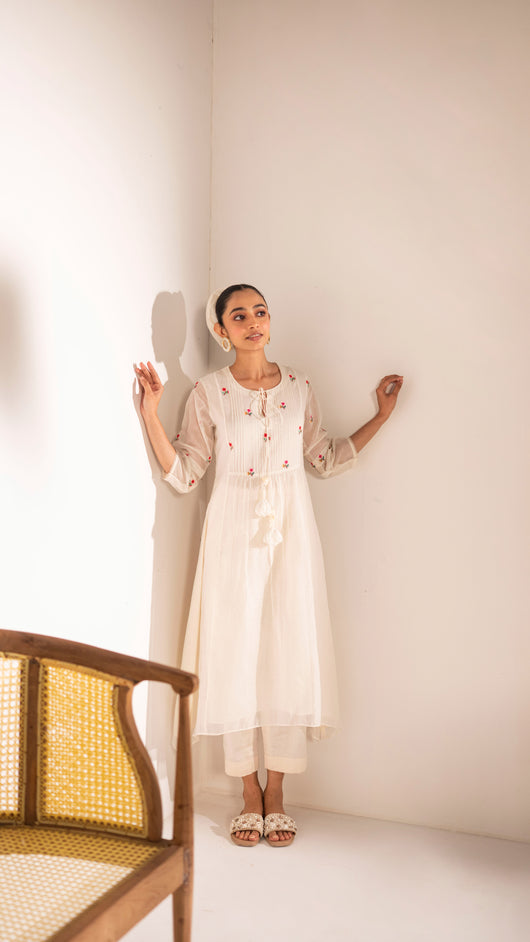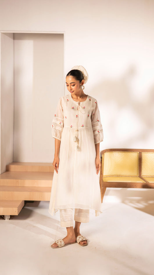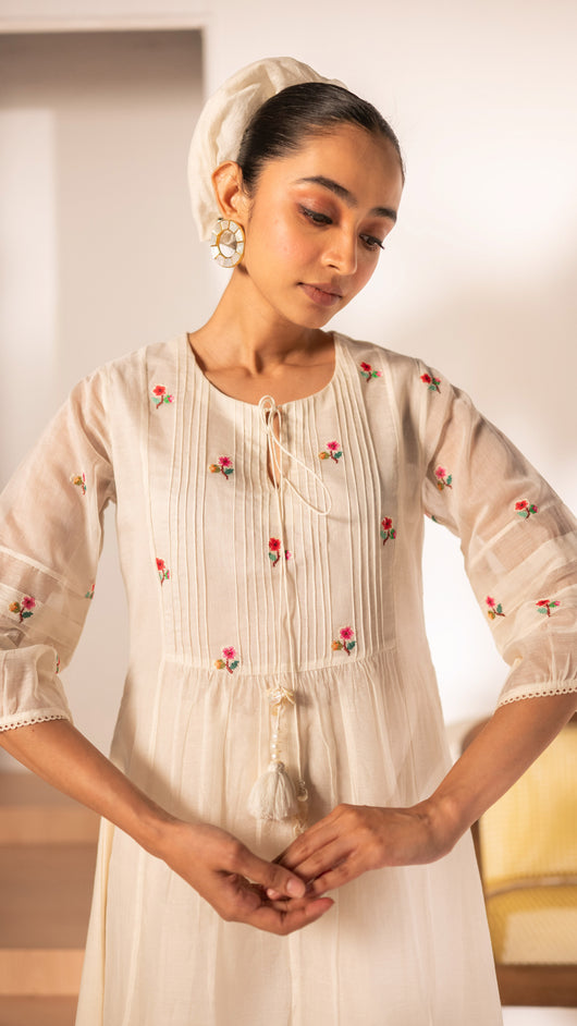 Zia Cross-Stitch Tunic Set (Off-White)